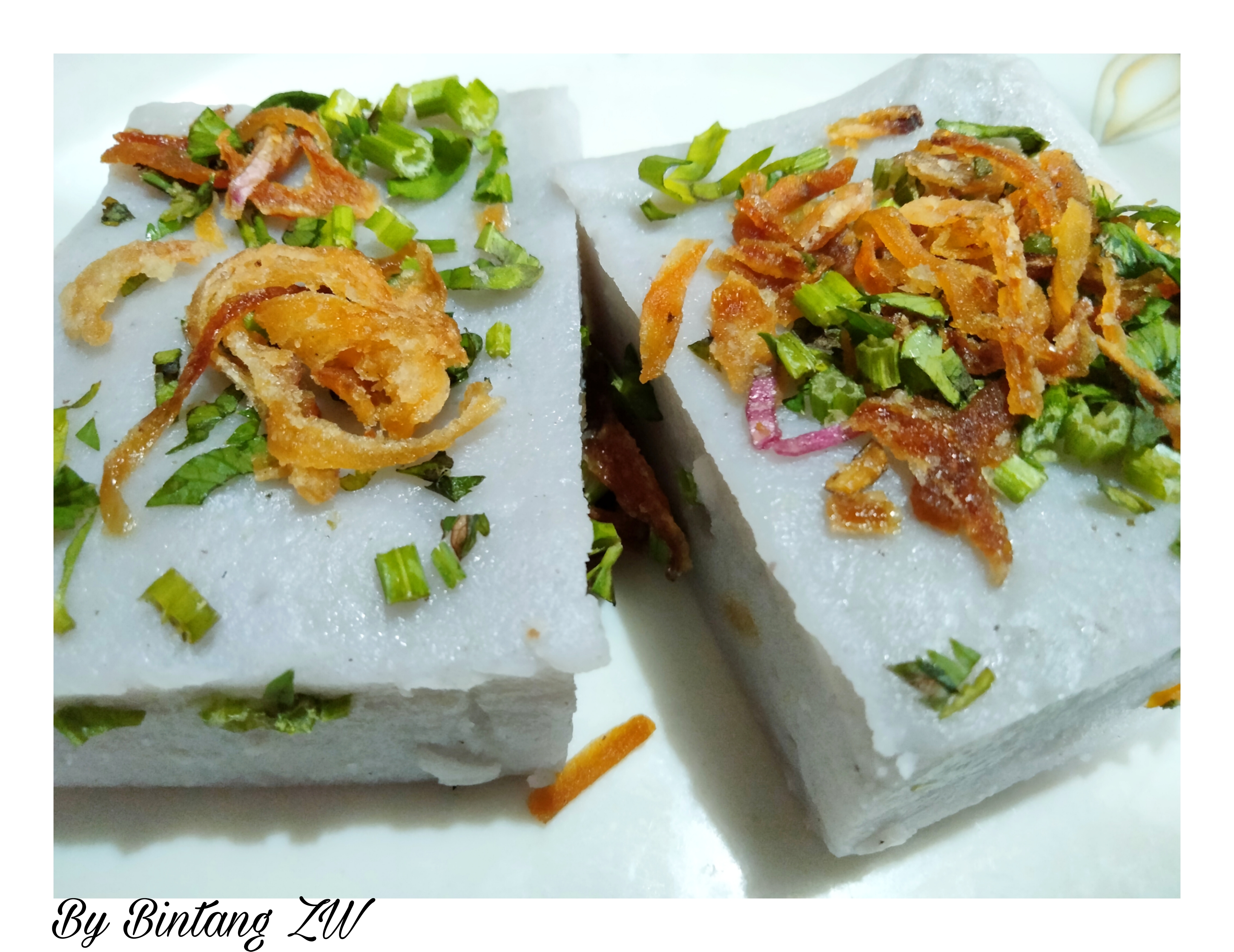 Gandus cake, traditional food from Palembang City. It is made of CoconutMilk, Cornflour and Tapioka. This cake has a topping. The topping made up of ebi shrimps, pieces of celery, hot peppers, and Fried Onions. The texture of the cake plus the shrimp and chili slices make this one have a unique and delicious taste. And the cost of this cake only Rp.1000,-